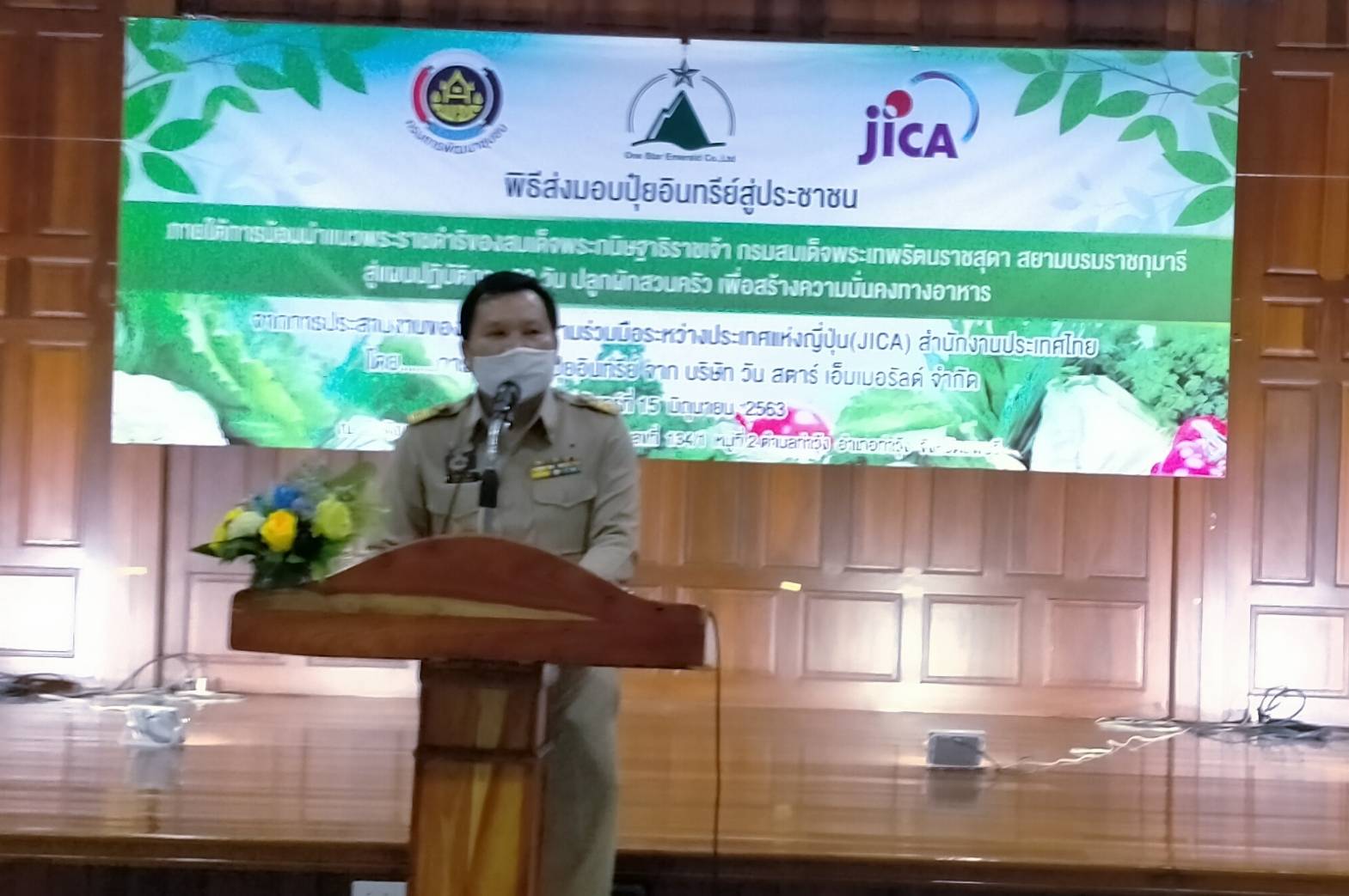 นายเสฏฐชัย ยุทธเศรษฐสิริ พัฒนาการจังหวัดนครนายก มอบหมายให้ ว่าที่ ร.ต.ไพทูรย์ ปาจันทร์ และ นางเบญจมาศ เหรียญสมบูรณ์ ผช.หัวหน้ากลุ่มงานส่งเสริมการพัฒนาชุมชน ร่วมกิจกรรมการ ส่งมอบปุ๋ยอินทรีย์ชีวภาพ เพื่อดำเนินงานตามโครงการ “น้อมนำ แนวพระราชดำริของสมเด็จพระกนิษฐาธิราชเจ้า กรมสมเด็จพระเทพ รัตนราชสุดาฯ สยามบรมราชกุมารี สู่แผนปฏิบัติการ ๙๐ วัน ปลูกผัก สวนครัว เพื่อสร้างความมั่นคงทางอาหาร” โดยการประสานงานของ องค์กรความร่วมมือระหว่างประเทศแห่ง ญี่ปุ่น (JICA) สำนักงาน ประเทศไทย ที่มีความประสงค์ขอมีส่วนร่วมในการสนับสนุนการ สร้างประโยชย์ร่วมกับกรมการพัฒนาชุมชน ขอรับการสนับสนุน ปุ๋ยอินทรีย์ที่ดีมีคุณภาพสูงได้รับการรับรองมาตรฐานจากรมวิชาการ เกษตร กระทรวงเกษตรและสหกกร์ เพื่อมอบให้กับประชาชนที่เข้า ร่วมโครงการ จากบริษัท วัน สตาร์ เอ็มเมอรัลด์ จำกัด ณ อำเภอท่าวุ้ง จังหวัดลพบุรี