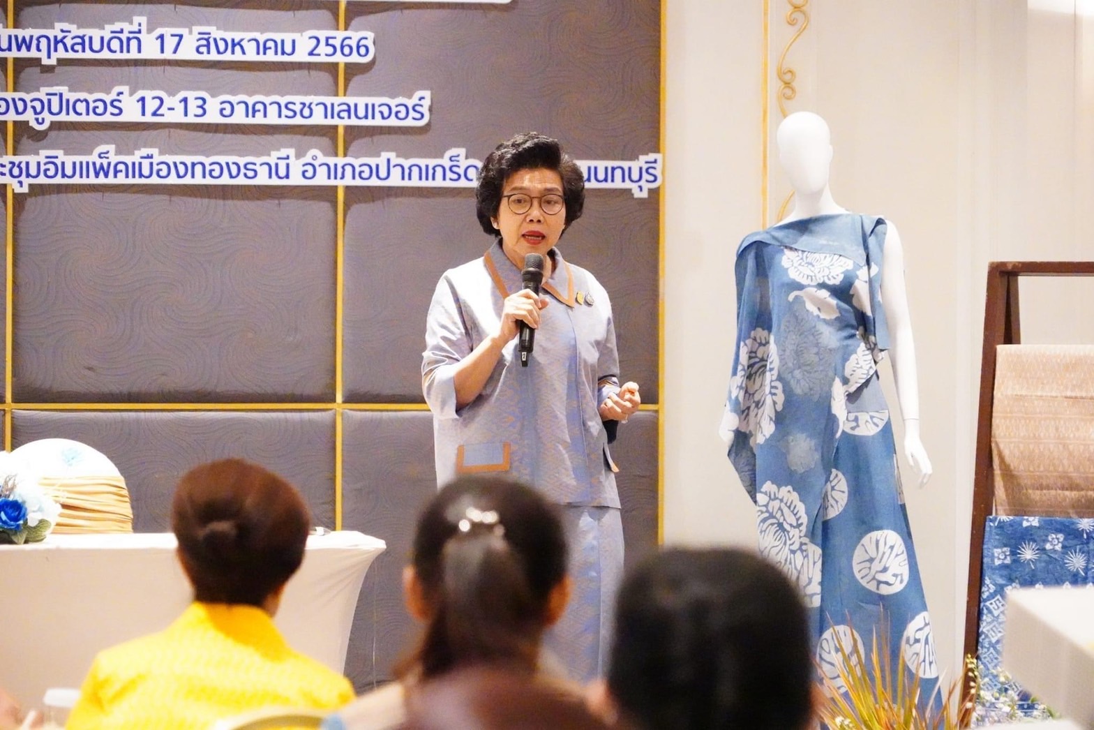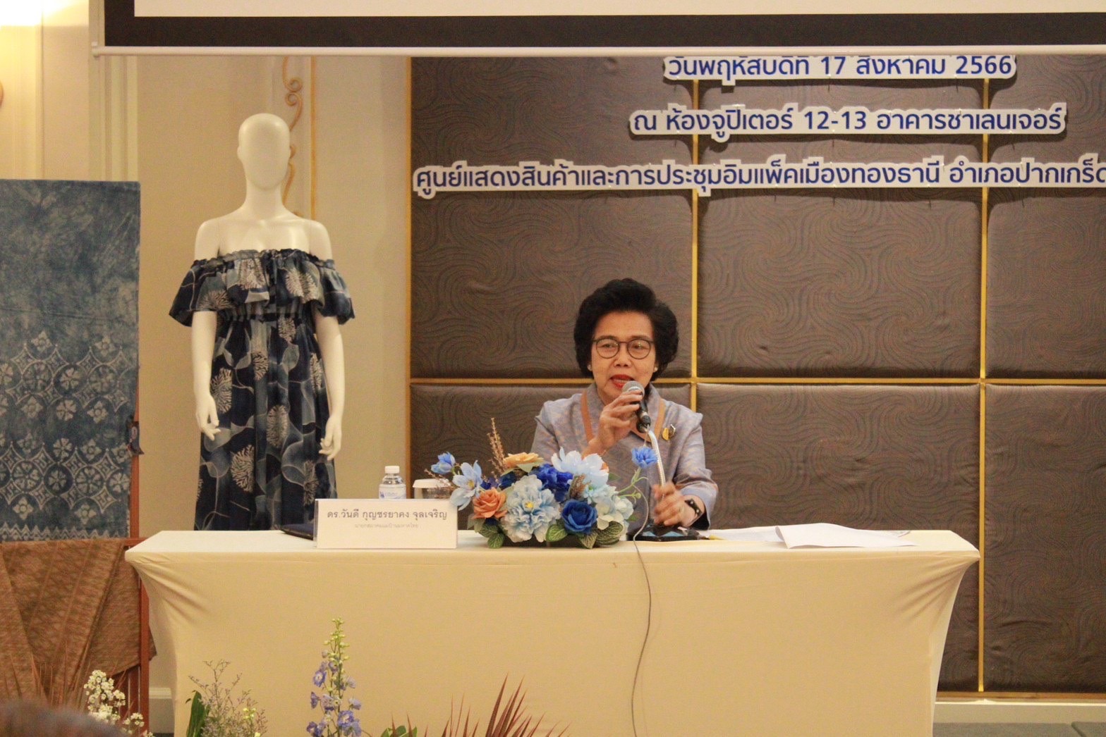 …ดร.วันดี กุญชรยาคง จุลเจริญ นายกสมาคมแม่บ้านมหาดไทย เป็นประธานเปิดและบรรยายพิเศษในโครงการสร้างการรับรู้ สืบสาน อนุรักษ์ภูมิปัญญาผ้าไทย และส่งเสริมการพัฒนาผลิตภัณฑ์ให้เป็นมิตรต่อสิ่งแวดล้อม โดยมี นายอรรษิษฐ์ สัมพันธรัตน์ อธิบดีกรมการพัฒนาชุมชน ดร.ประเสริฐสุข เพฑูรย์สิทธิชัย ที่ปรึกษาปลัดกระทรวงมหาดไทยและที่ปรึกษาโครงการส่งเสริมการพัฒนาผลิตภัณฑ์ผ้าไทยให้เป็นมิตรต่อสิ่งแวดล้อม คณะผู้บริหารกรมการพัฒนาชุมชน คณะผู้บริหารจังหวัดนนทบุรี นางกุลทรัพย์ ชื่นโกสุม นางจิรวรรณ เพ็ญพาส ผู้ช่วยศาสตราจารย์ ดร. ศศิธร จันทมฤก นางปวีณ์ริศา เกิดสม นางวรสุดา รัตนสุคนธ์ นางศลิษา ภิรมย์รัตน์ นางจิณณารัชช์ สัมพันธรัตน์ อุปนายกสมาคมแม่บ้านมหาดไทย ประธานแม่บ้านมหาดไทยจังหวัด 76 จังหวัด ร่วมรับฟัง