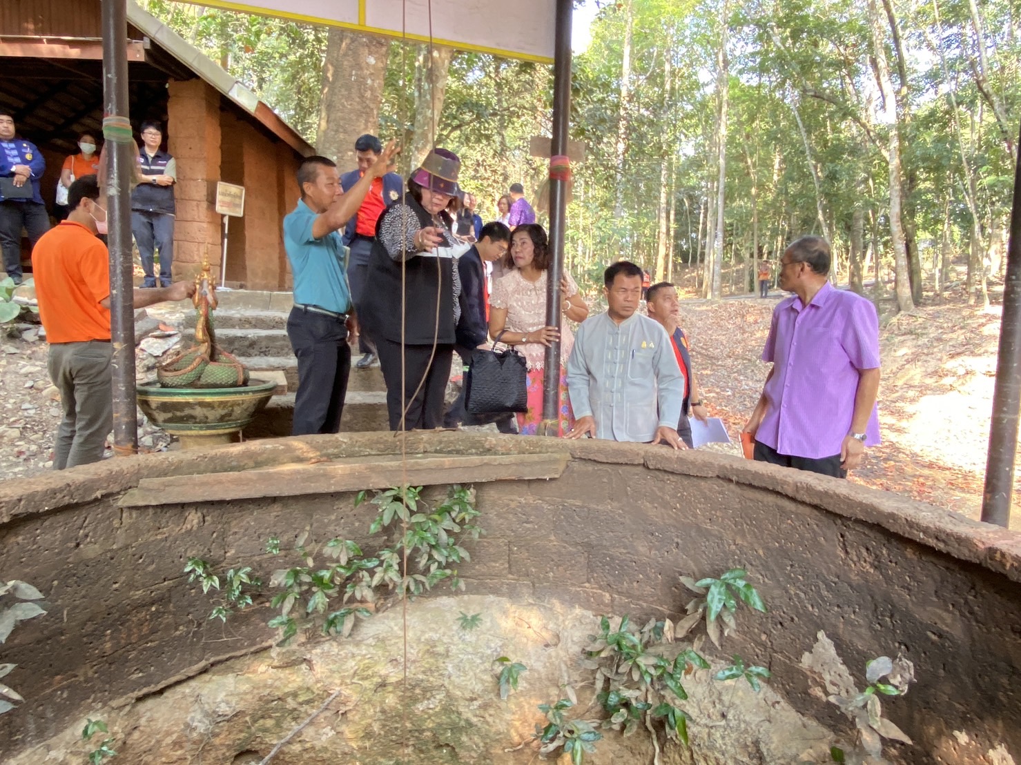 …นายธนวัฒน์ ปิ่นแก้ว รองผู้ว่าราชการจังหวัดนครนายก พร้อมหัวหน้าส่วนราชการระดับระดับจังหวัด/อำเภอ ผู้นำท้องถิ่น ผู้นำชุมชน ลงพื้นที่บริเวณเมืองโบราณดงละคร เพื่อสำรวจพื้นที่เมืองโบราณดงละคร ซึ่งเป็นที่ตั้งของบ่อน้ำทิพย์ ที่เป็นหนี่งในบ่อน้ำศักดิ์สิทธิ์ของประเทศสำหรับการจัดพิธีพลีกรรมตักน้ำจากแหล่งน้ำศักดิ์สิทธิ์ ทั้ง 76 จังหวัดของประเทศ