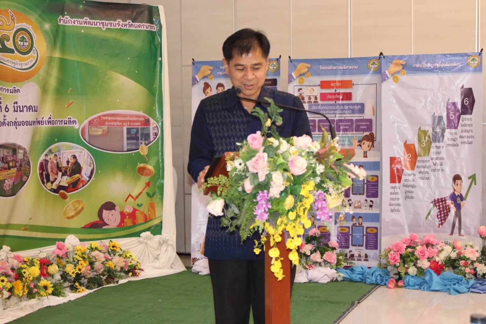 นายธนวัฒน์ ปิ่นแก้ว รองผู้ว่าราชการจังหวัดนครนายก ได้รับมอบหมายจากท่านผู้ว่าราชการจังหวัดนครนายก เดินทางมาเป็นประธานในพิธีเปิดมหกรรมการออม 50 ปี ทุนชุมชนขับเคลื่อนเศรษฐกิจฐานราก (ระดับภูมิภาค) ประจำปี 2567 มีการอ่านสารอธิบดีกรมการพัฒนาชุมชน เนื่องในโอกาสวันก่อตั้งกลุ่มออมทรัพย์เพื่อการผลิต ครบรอบ 5 ปี และได้กล่าวถึงการดำเนินงานกลุ่มออมทรัพย์เพื่อการผลิตว่า เป็นการ บูรณาการการทำงาน โดยมุ่งเน้นการส่งเสริมทุนชุมชนขับเคลื่อนเศรษฐกิจฐานราก ทำให้การขับเคลื่อนมีความชัดเจนเป็นรูปธรรม สามารถปฏิบัติได้จริง และบรรลุตามภารกิจของกรมการพัฒนาชุมชน และภารกิจกระทรวงมหาดไทยในการบำบัดทุกข์ บำรุงสุขให้ประชาชนเกิดความอุดมสมบูรณ์พูนสุข สามารถแก้ไขปัญหาความยากจน ลดความเหลื่อมล้ำของสังคม